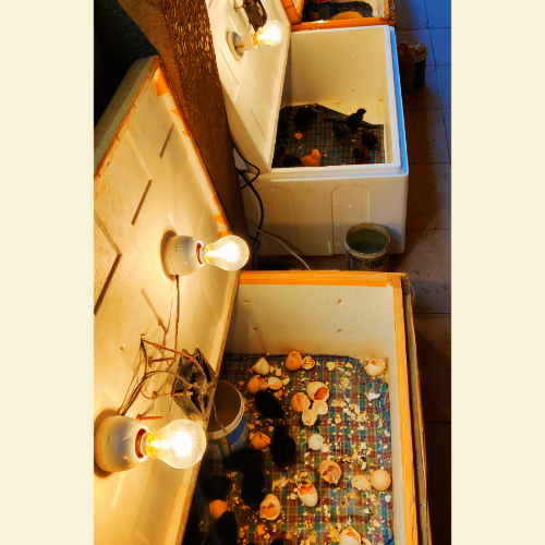 Our 120-egg capacity semi-automatic incubator is designed to provide optimal conditions for hatching a variety of bird species, including Chicken, Duck, Quail, Goose and Pigeon. This incubator features automatic temperature control, ensuring that your eggs are maintained at the ideal temperature for hatching. You need to manually roll the eggs to ensure even incubation and prevent hot spots. Photo: top view, inner view, with eggs and chicks